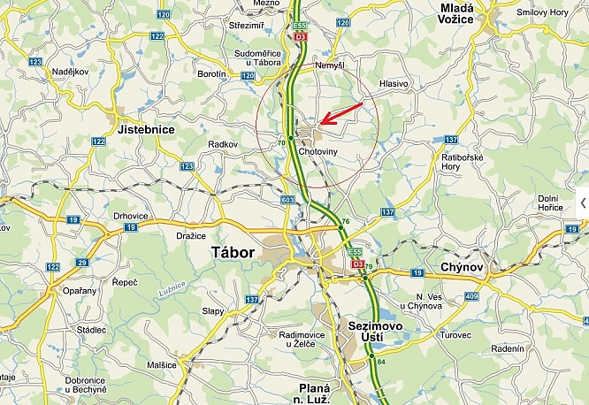 Pronájem sídla firmy Chotoviny u Tábora, dálnice D3